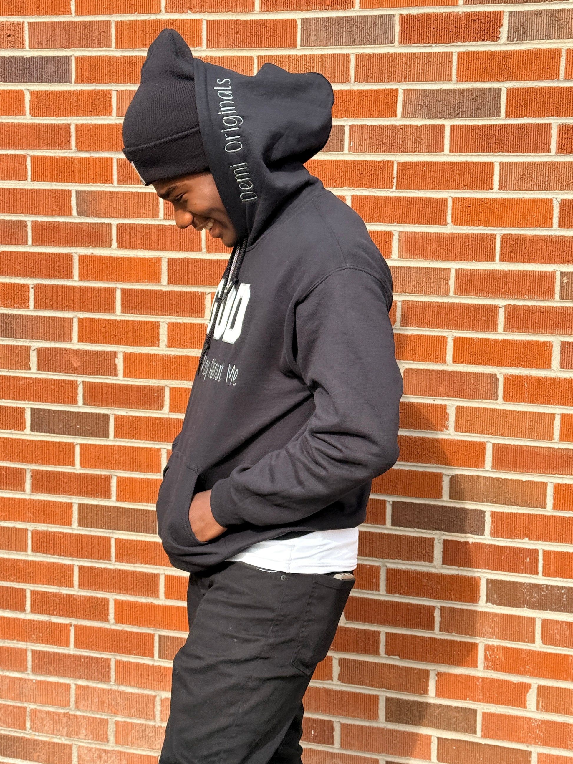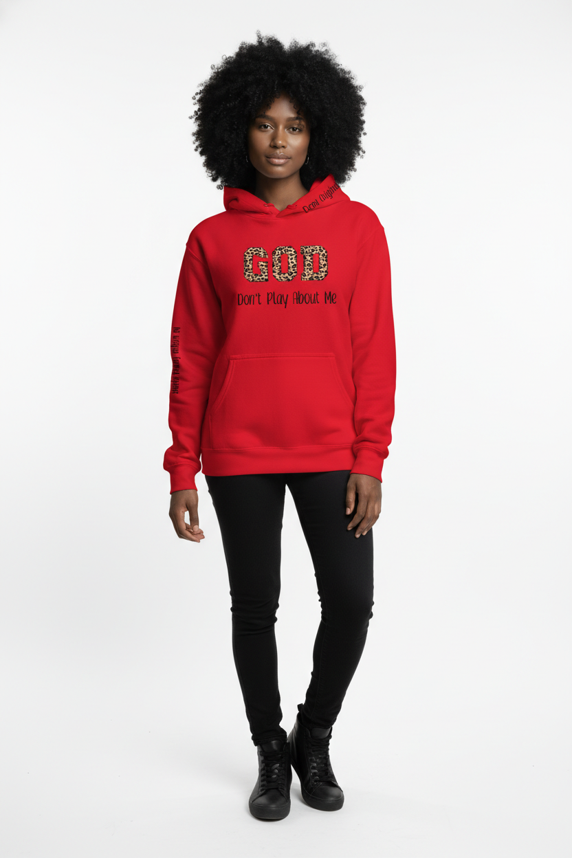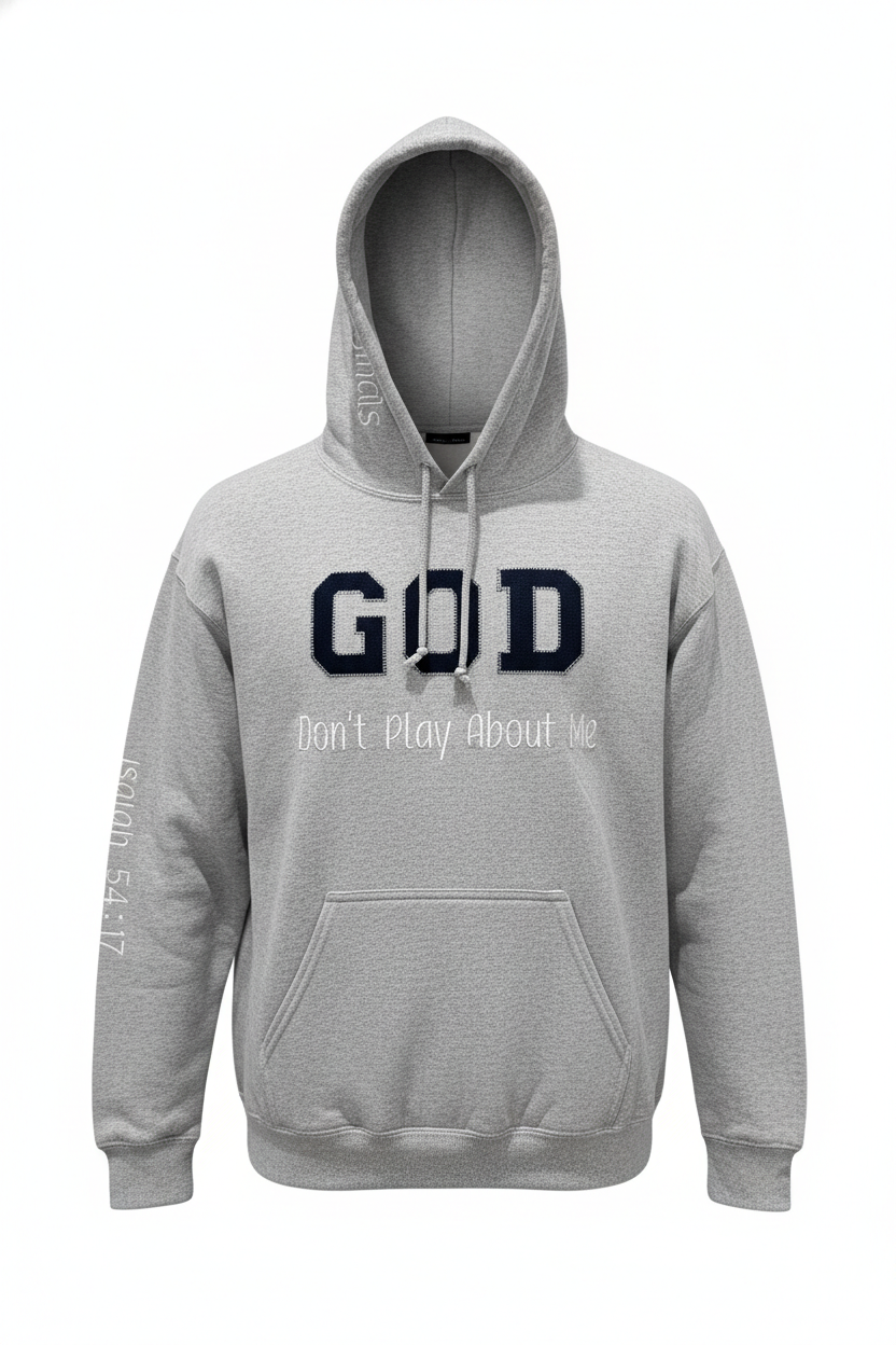Hoodie with Demi Originals logo on hood, GOD Don’t Play About Me on Chest and Bible verse on sleeve.